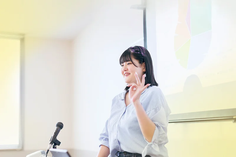樟蔭では、専門分野だけでなく、学科の垣根を越えた教養科目を通じて、幅広い視野と多様な価値観を育むことをめざします。また、女性だけの環境だからこそ、リーダーシップや自己表現を身につけやすいというメリットも!
