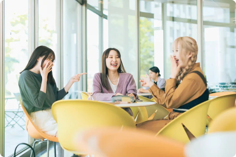 女性同士だからこそ、より気軽に関係を築きやすい環境です。それぞれが心地よい距離感を保ちながら、安心して支え合うことができ、学生たちは自分のペースでキャンパスライフを送っています。