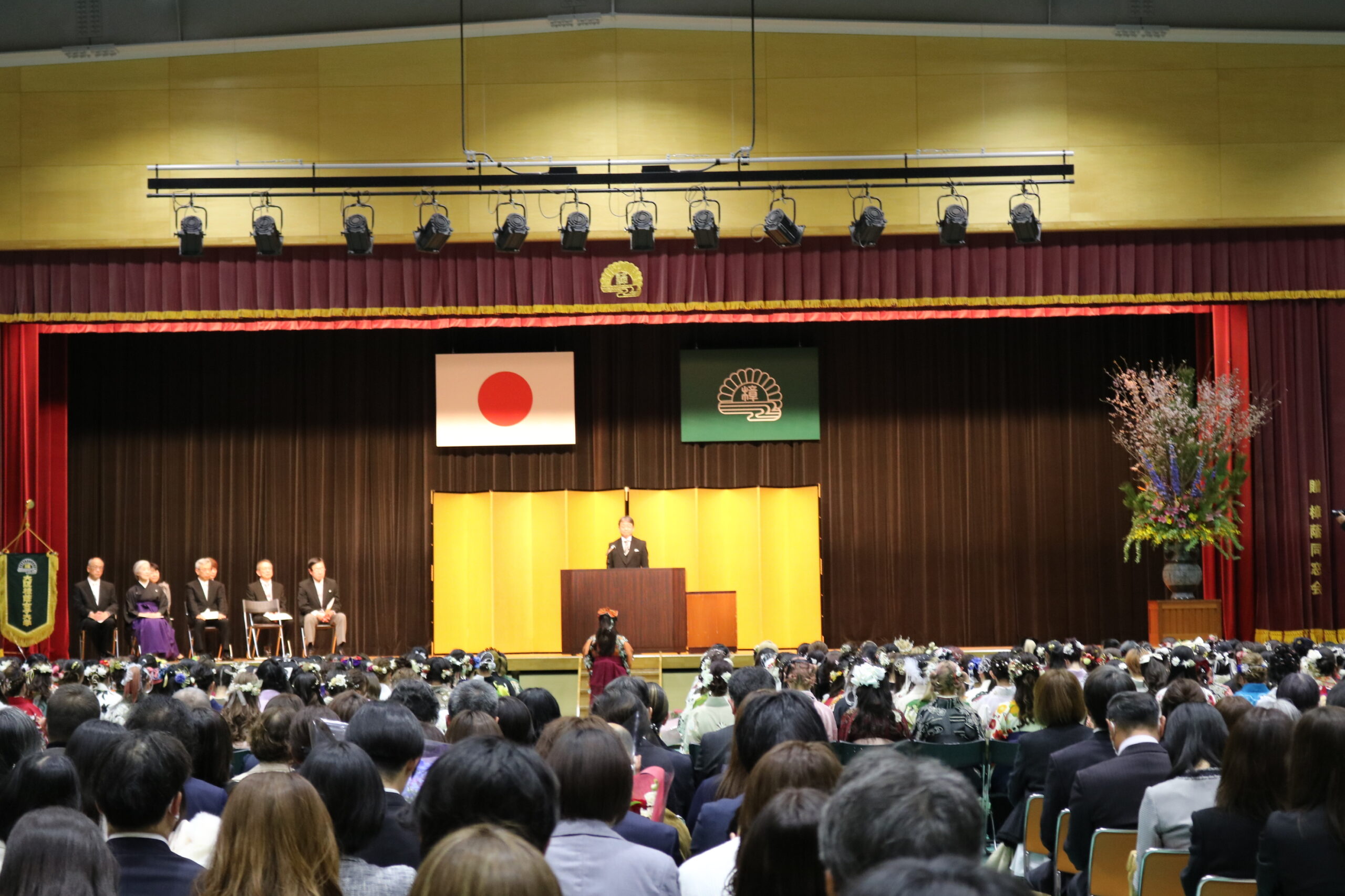 学位授与式では、学長式辞、理事長祝辞、後援会長祝辞など、