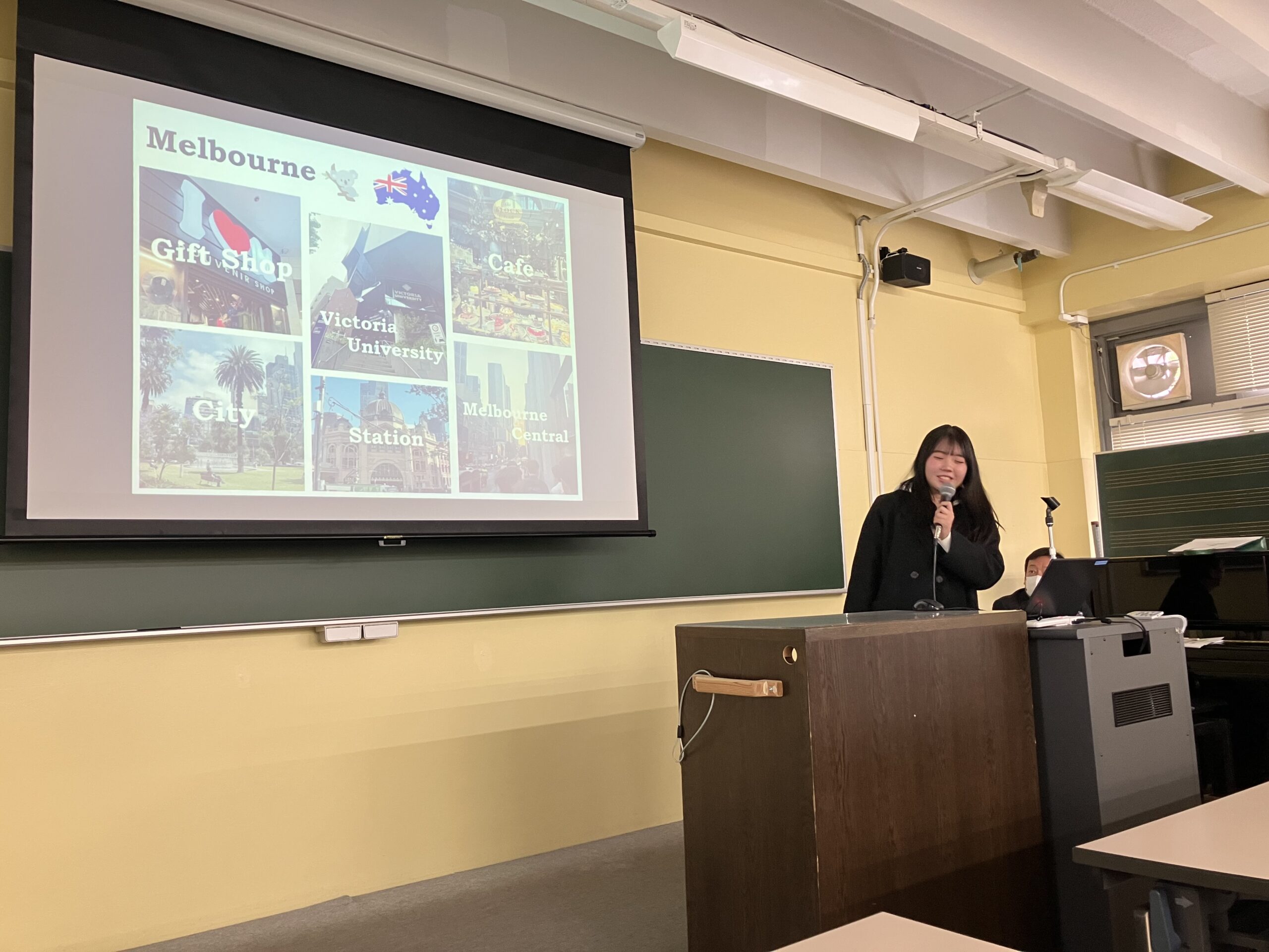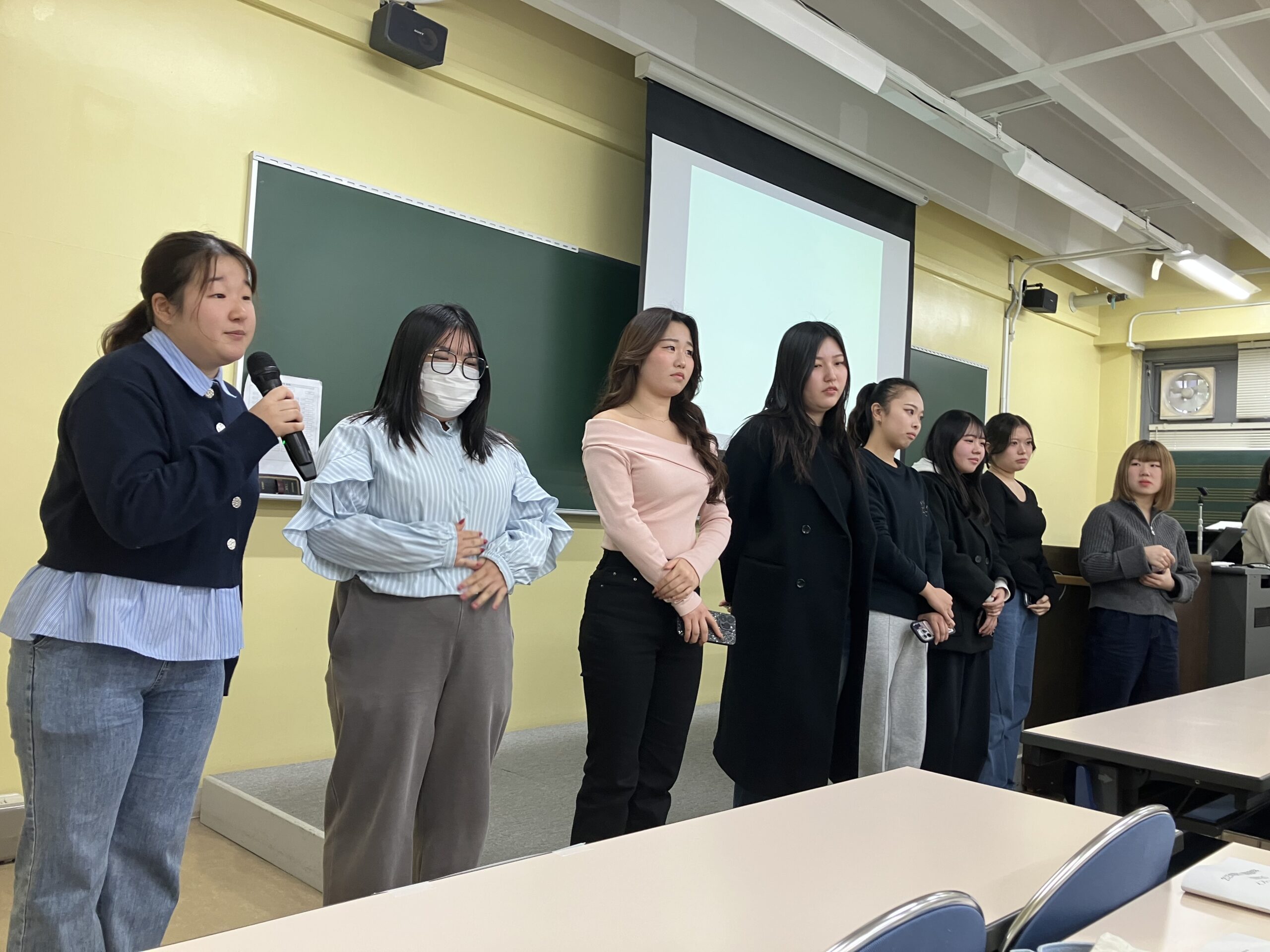 3月7日には、報告会を実施し、ご家族や後輩の1年生も参加されました。全員が英語や韓国語で「ひとことスピーチ」を披露した後