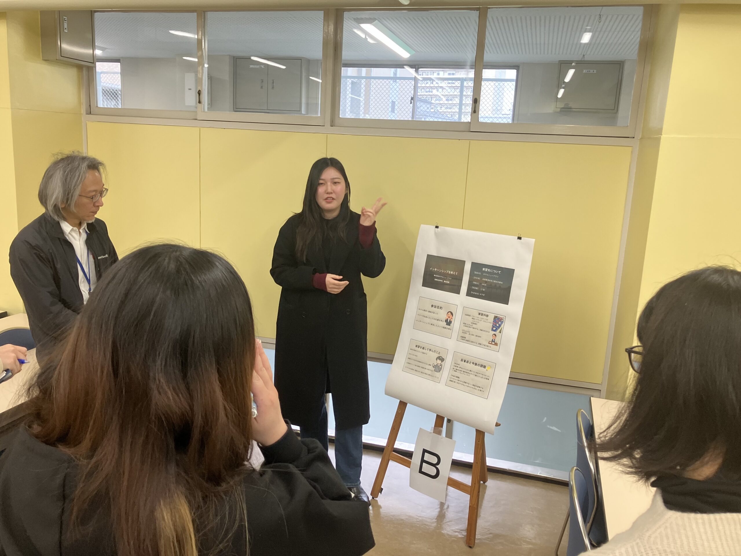 最後は代表者以外の全員が4箇所に分かれ、ポスターを使って自らの経験や今後の抱負を語りました。