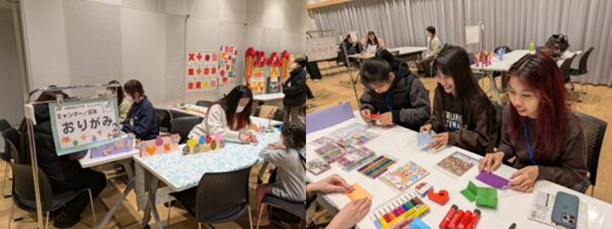 さらに、「PIKA★ICHI美術館」(2026年1月31日開催)では、ミャンマーの留学生と日本人学生が協力して折り紙ブースを出展しました。