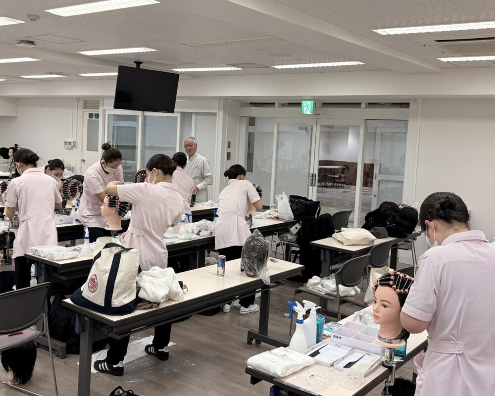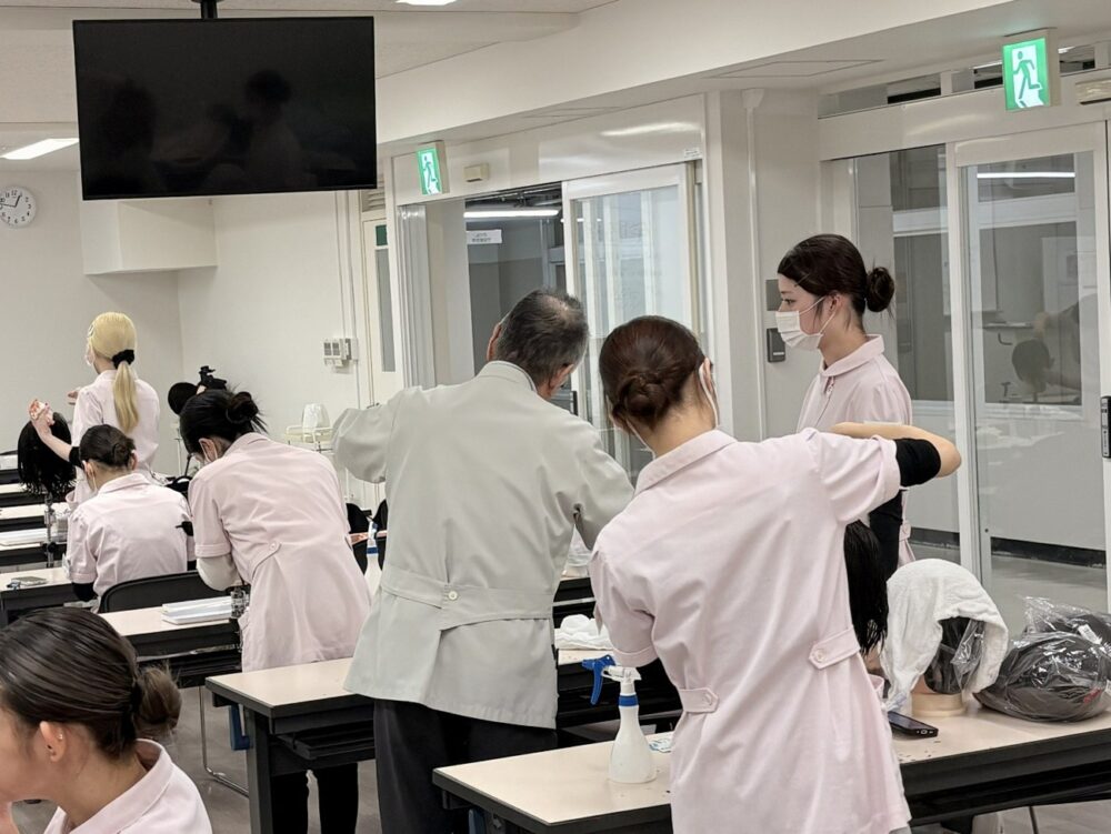 美容師国家試験の実技試験に向けた学生の様子をお届けします。
