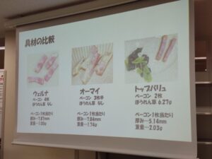 最近、冷凍パスタで様々な商品が発売されていますが、メーカーの異なるカルボナーラについて、具材の様子を比較した発表もありました。