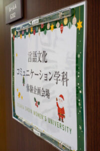 あいにくの雨模様ではありましたが、言語文化コミュニケーション学科の体験企画には遠方から足を運んでくださった方々もいらして、先生方もそろってリラックスした雰囲気でおむかえです。