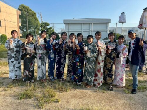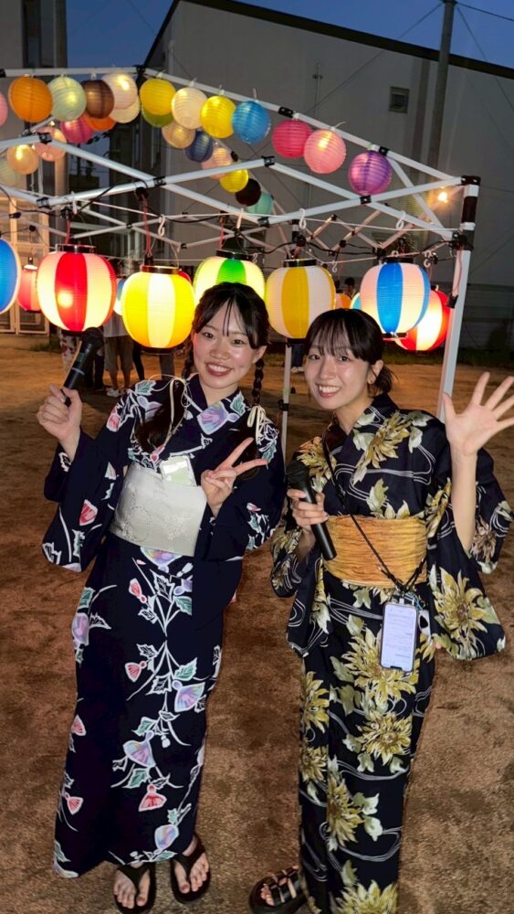 当日は地域の方に浴衣を着つけていただき、盆踊りとビンゴ大会を担当させていただきました!