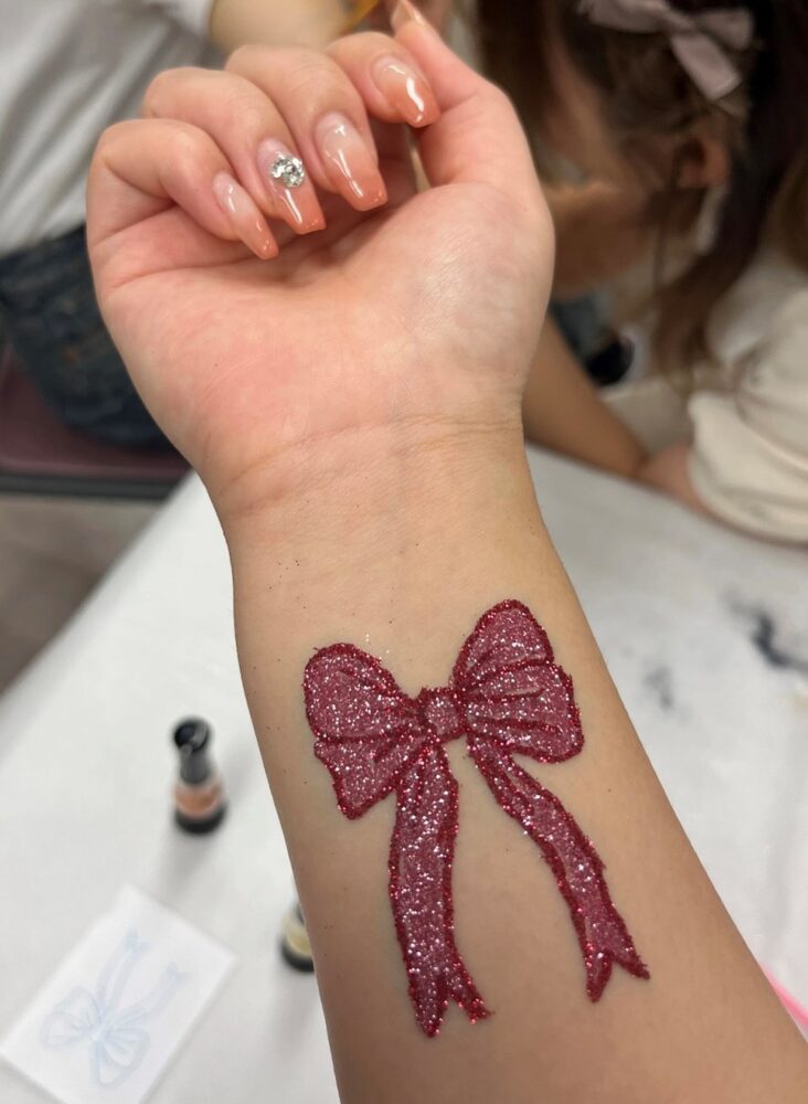 あっという間に、キラキラかわいらしいボディージュエリーの完成♬