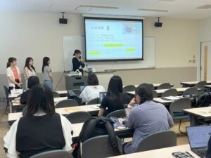 7月19日(土)にキャリア実習A(学生提案型)の中間報告を行いました。この科目は企業から提示される商品開発やプロモーション、売場づくりなどの様々な課題に対し、グループワークによって具体的な提案を行うことを通して、自らのキャリア選択に能動的、自主的、肯定的に取り組み、キャリアを選択、決定できることを目的としています。