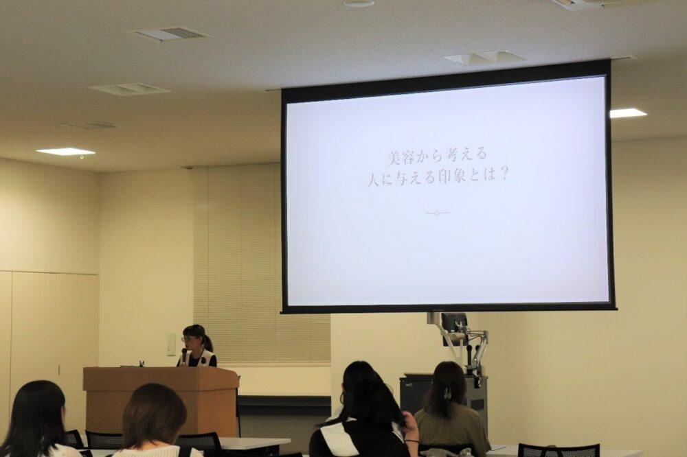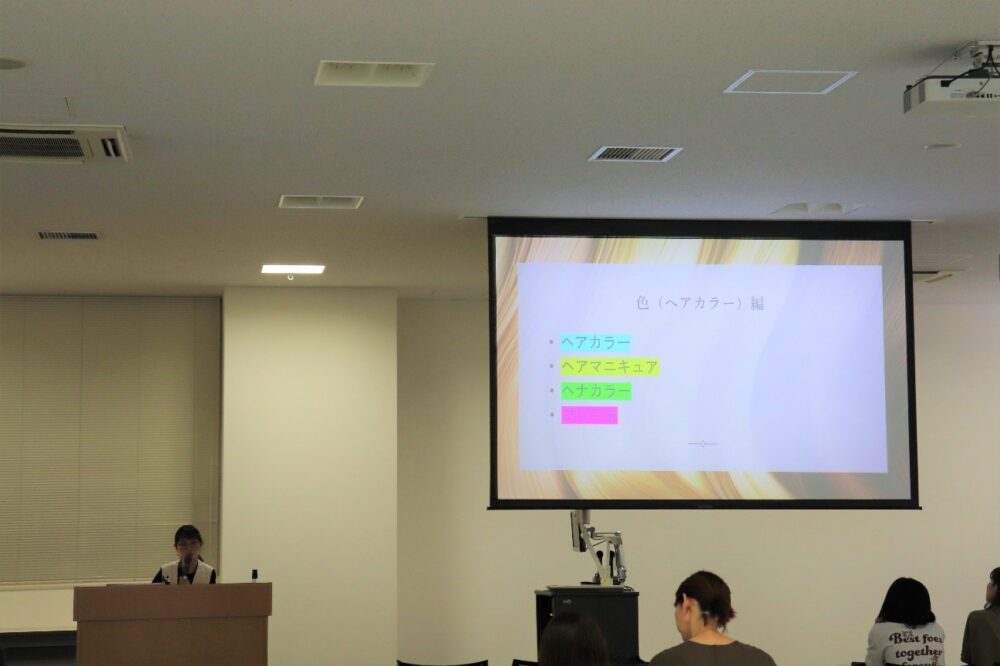 色・かたち・質感から知る『美容』の学びについて、毛髪を中心に「美容から考える人に与える印象」をサブテーマに解説を行いました。