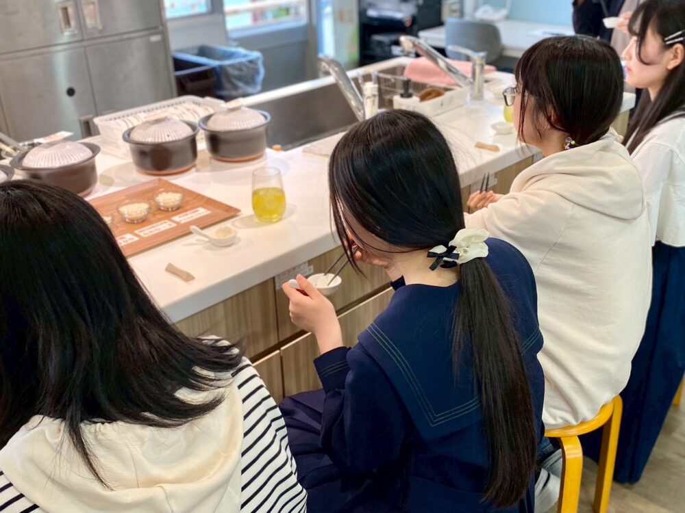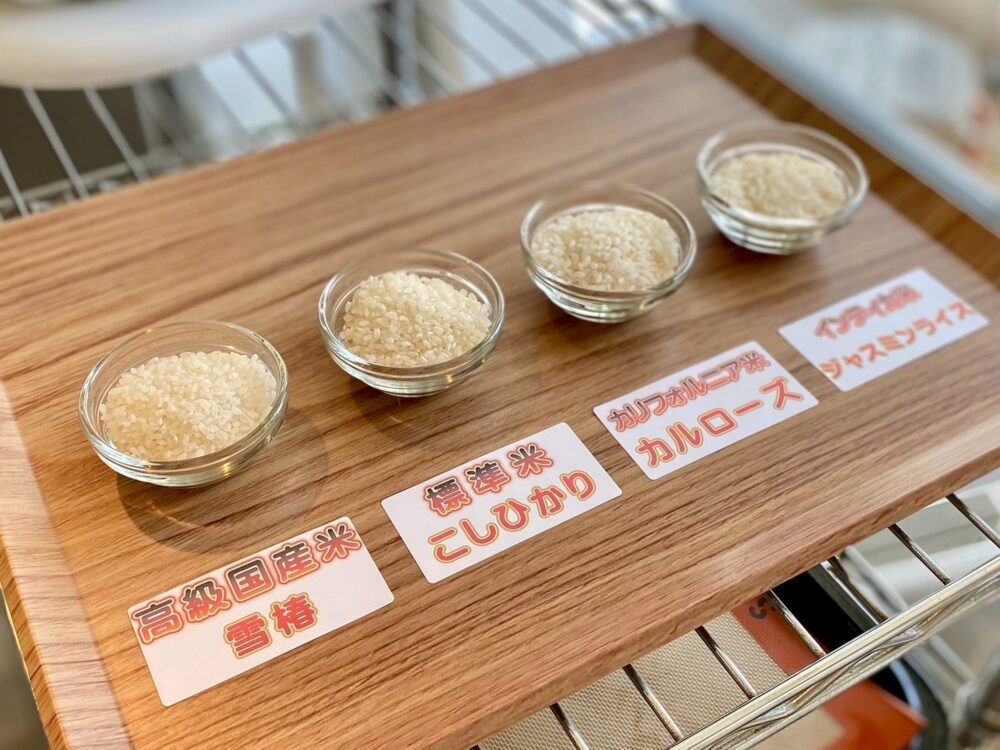 産地やブランド性が異なるお米4種類の違いを学びながら、それぞれのお米を美味しく調理するための工夫を話し合い、最後は試食!