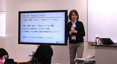 その後、社会学用語の「規範・同調・コード」というレクチャーでまとめ、「普通のメイクって何?」を考える体験を皆さまと共有しました。