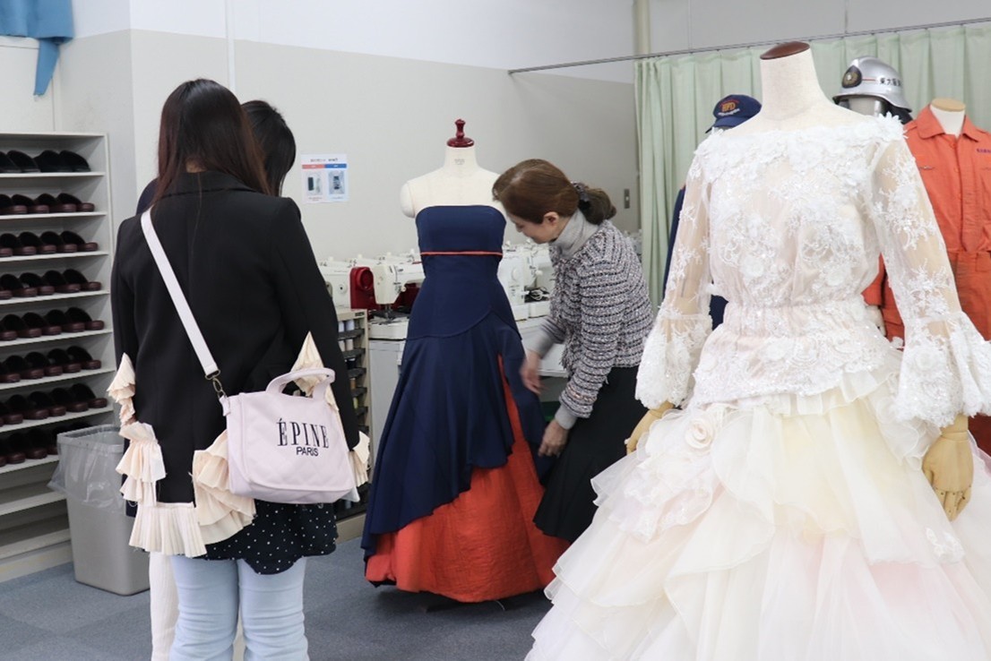 被服構成学研究室の卒業制作作品集をご覧いただき、そして実物に触れてもらいながら、服作りをイメージしていただく機会となりました。