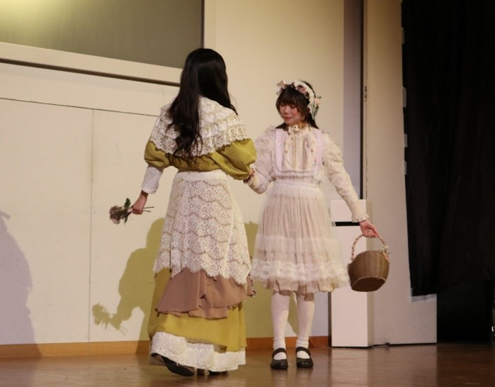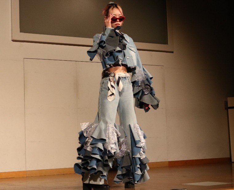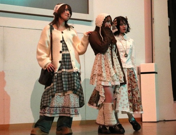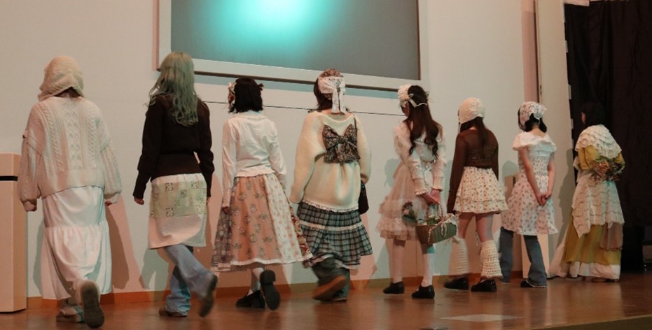 化粧ファッション学科の学生が中心となり、衣装制作・音楽・照明・構成など