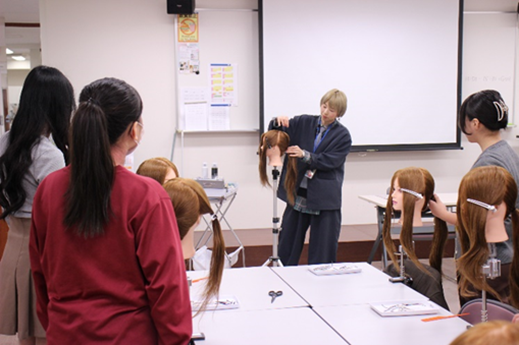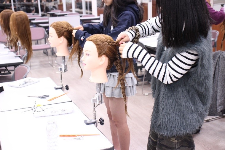 この体験企画では、ウィッグを使用してヘアアレンジを行い、1つのスタイルを完成させていきました。