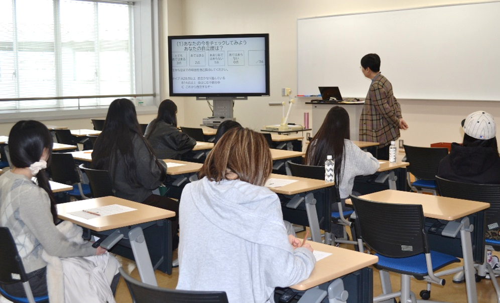 この体験授業では、高等学校家庭科で学習したことをもとに、自分の自立度を点検してもらうところから始めました。